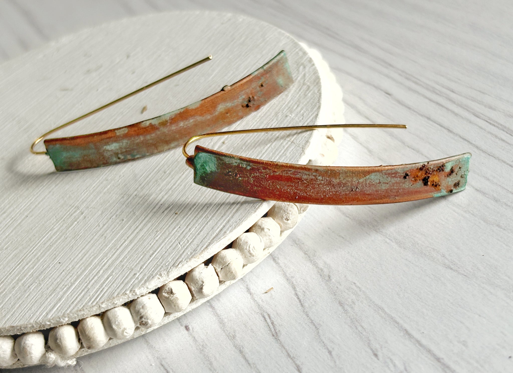 These are hand painted over a lengthy process to create this gorgeous patina. We have several of these in stock, and each pair differs quite a bit from each other since no two patinas are alike. Some will have more green and some will be more copper.