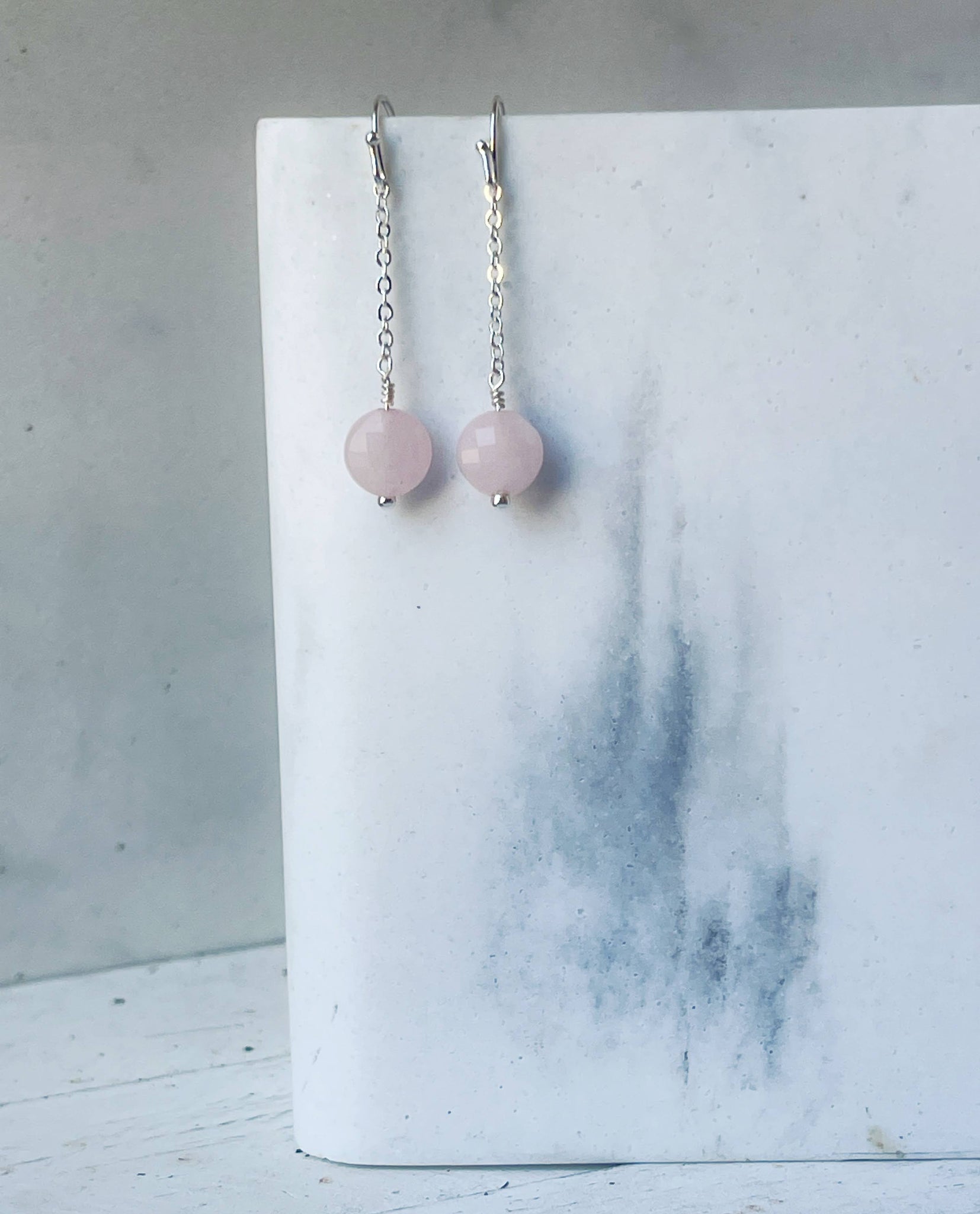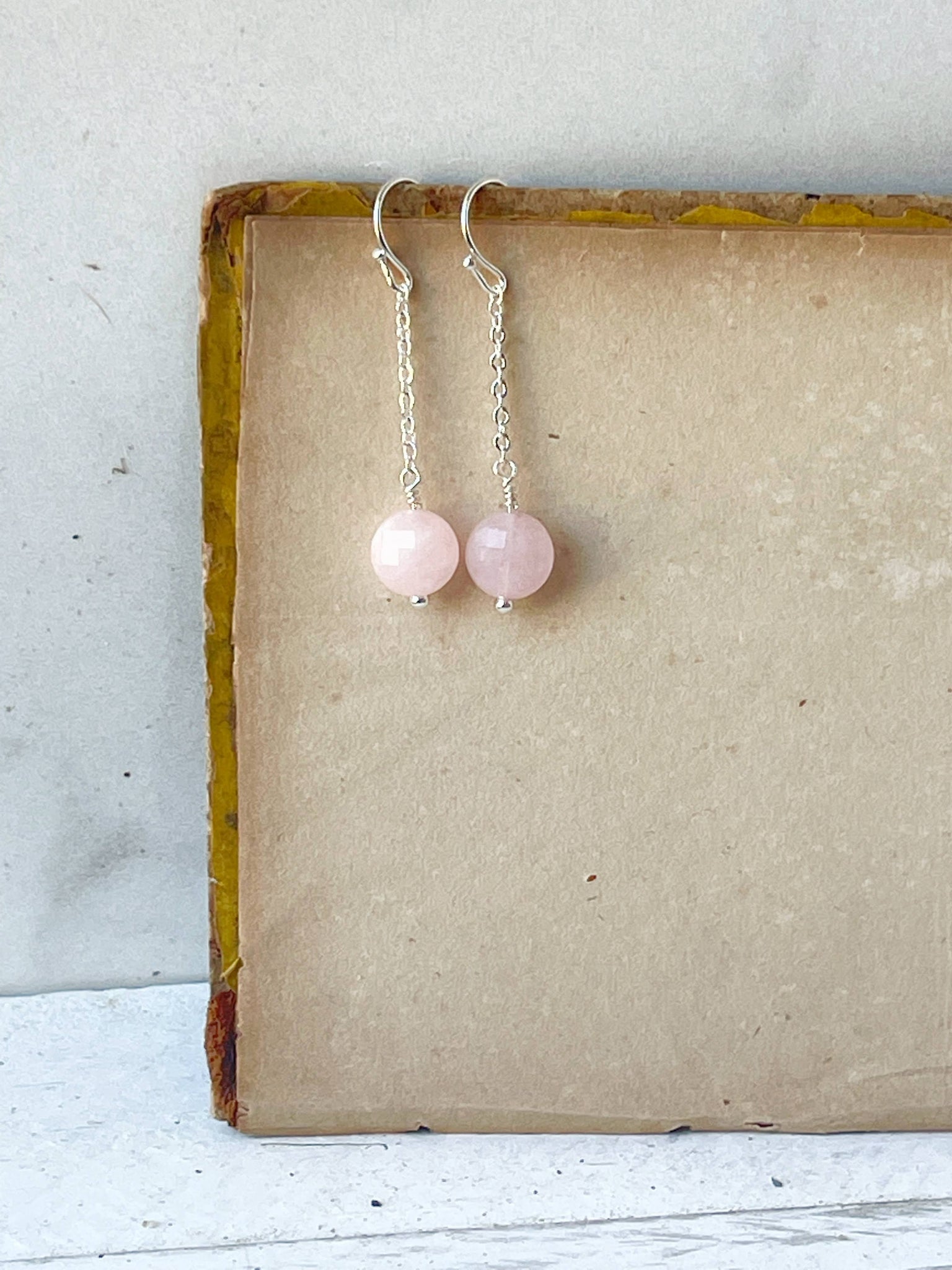 I wire wrapped faceted morganite coins onto chain and then attached to earwires.