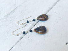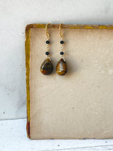 I wire wrapped tiny faceted black glass together to form the chain and wire wrapped a tiger's eye teardrop as a dangle.