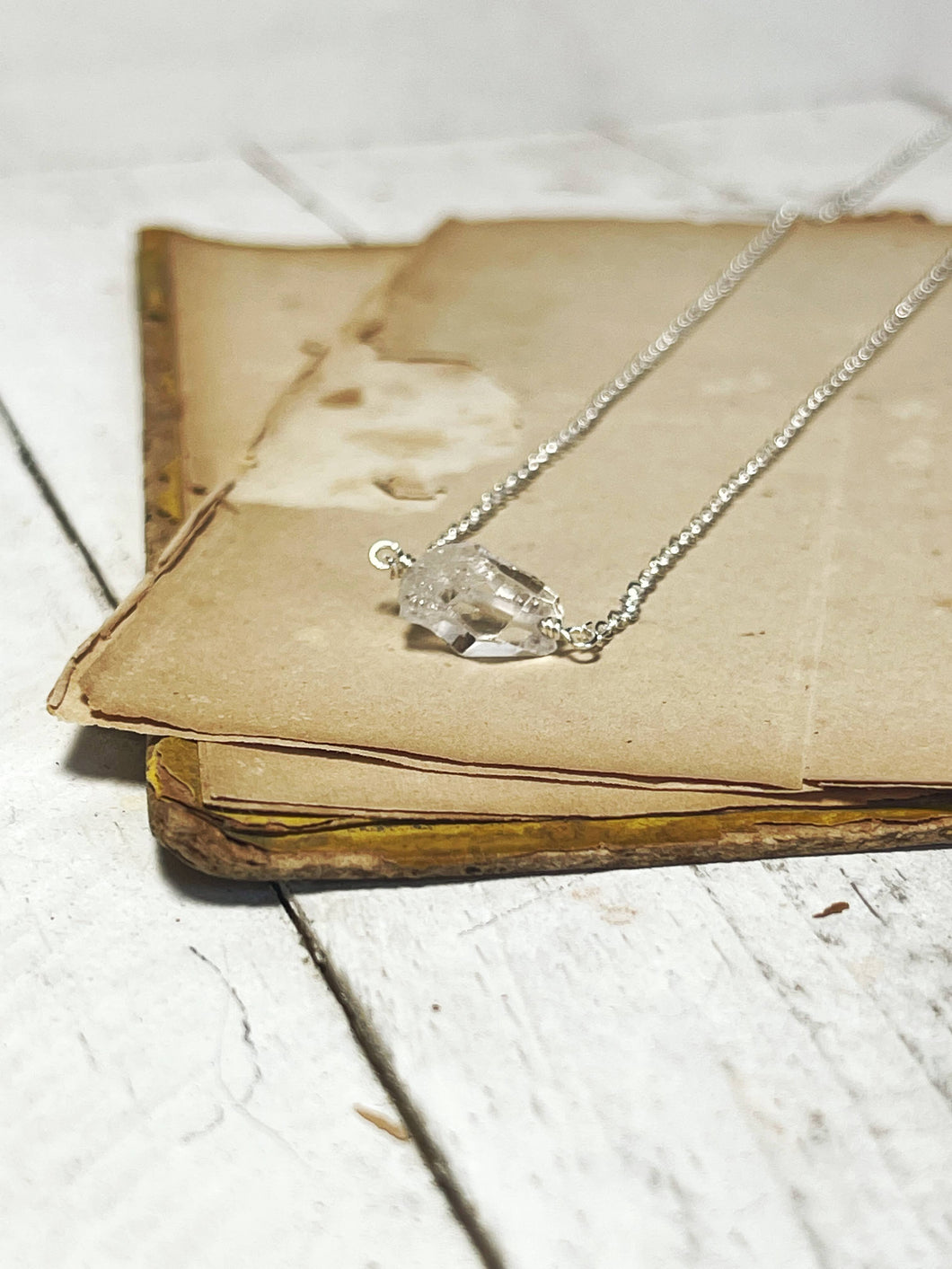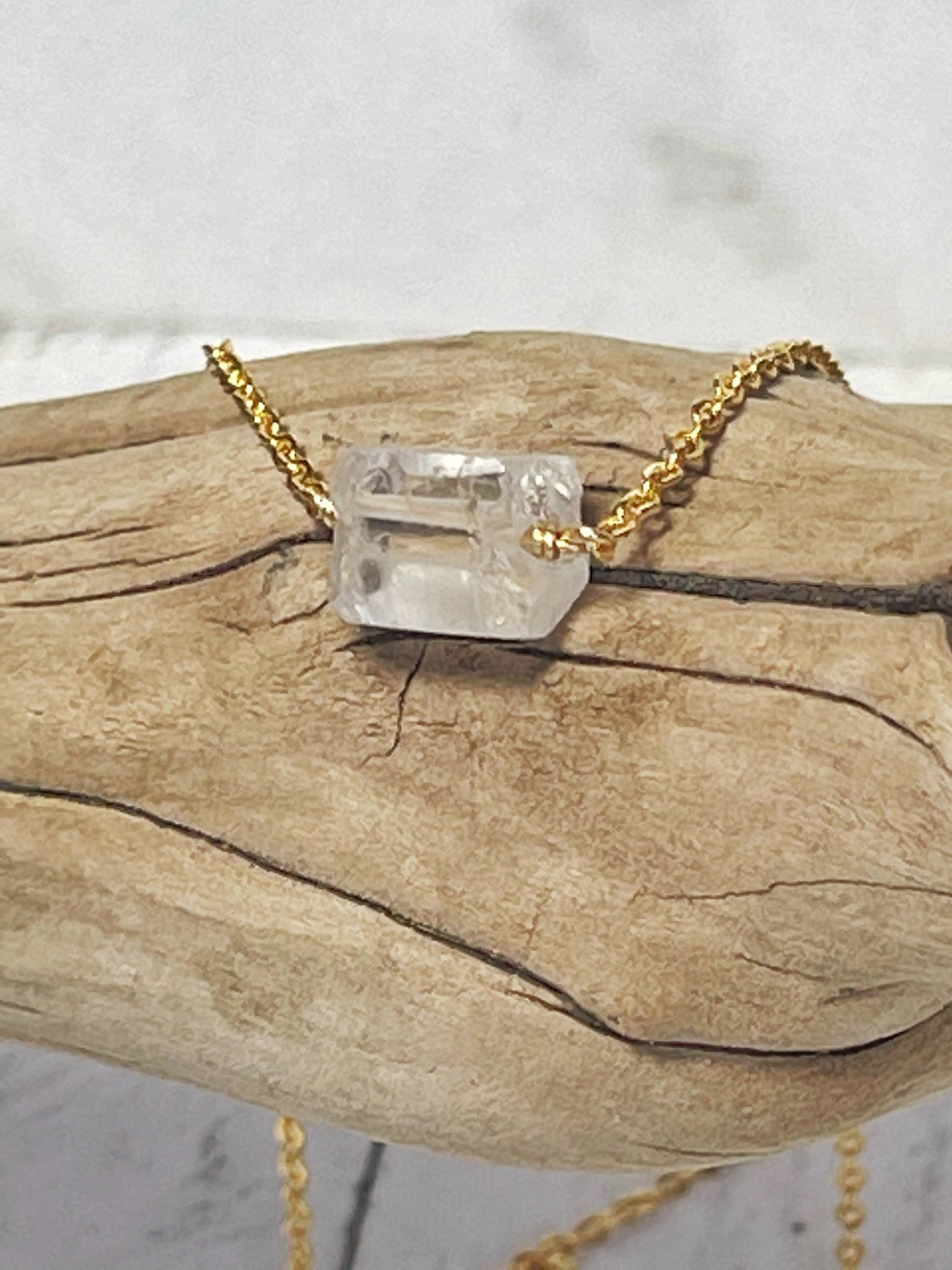 I wire wrapped a small rough natural crystal quartz onto chain.
